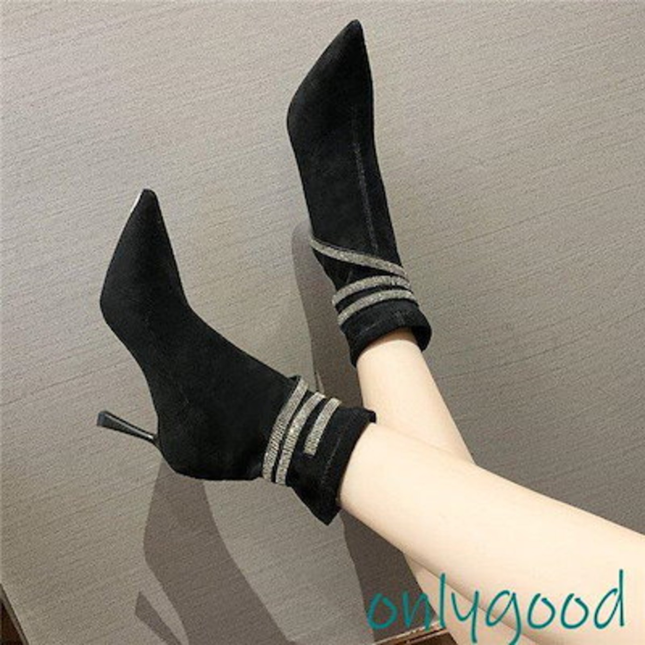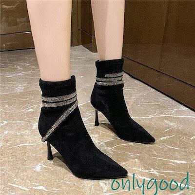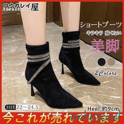 ブーツ ショートブーツ レディース スエード キラキラ ブーツ ピンヒール おしゃれ 秋冬新作 美脚 定番 痛くない 走れる 高級感 上品