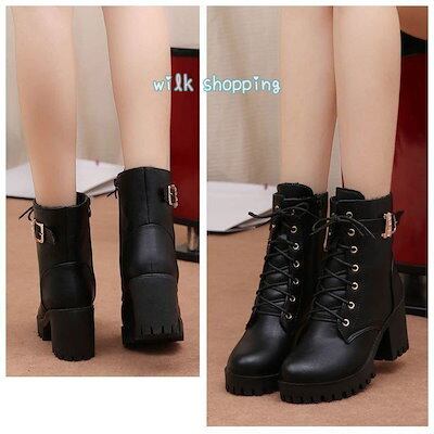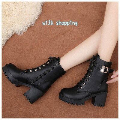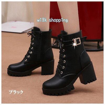 【3日以内出荷】レースアップブーツ ショートブーツ 厚底ブーツ 編み上げブーツ レディース 靴 ショート丈 黒 ストーム有り 8cmヒール シンプル ベルトデザイン