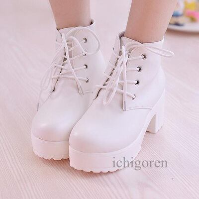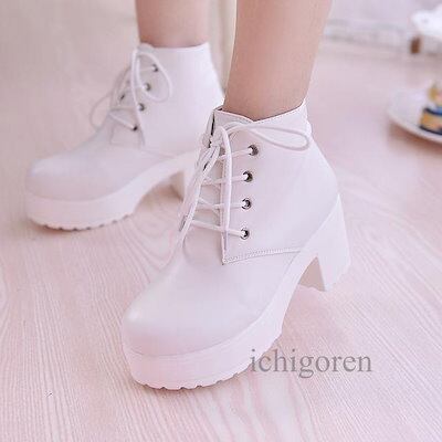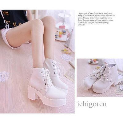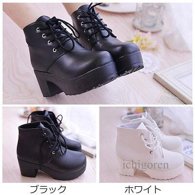 【3日以内出荷】ブーツ レディース 厚底 靴 シューズ ショートブーツ ショートブーツ レディース 編み上げ 黒 白 ホワイト ブラック 7cm ショート レースアップブーツ おすすめ | DOKO-ME