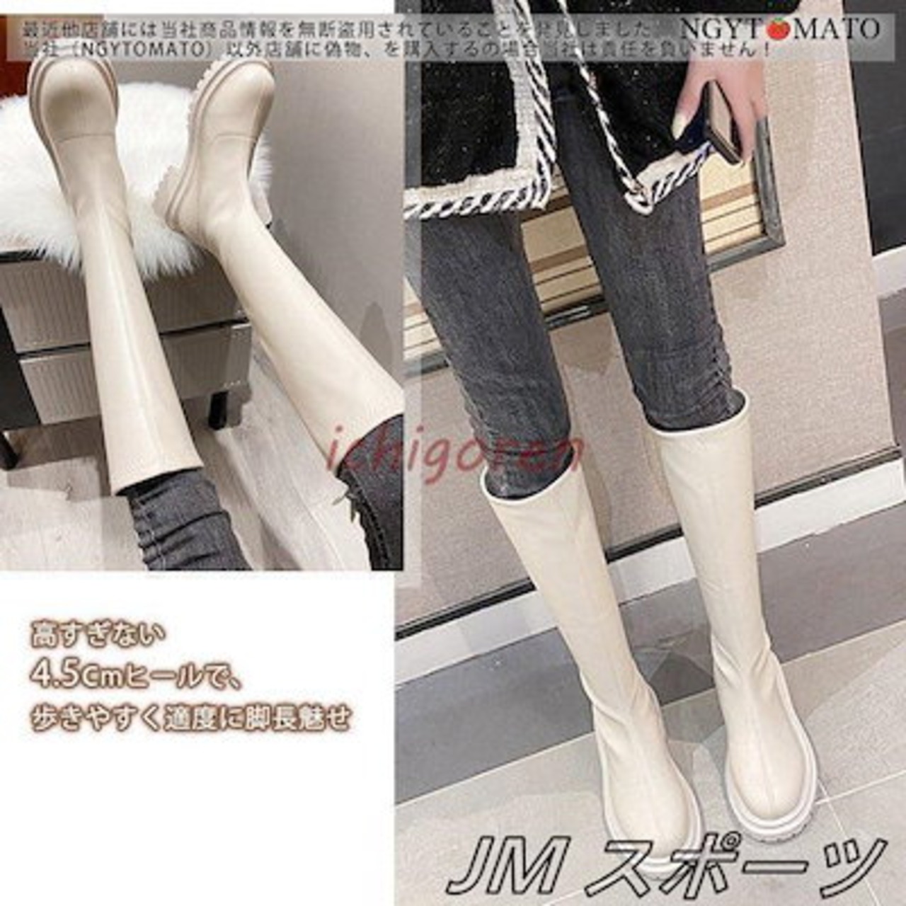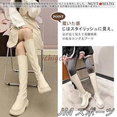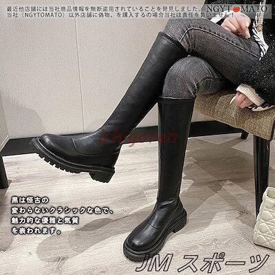 【3日以内出荷】ブーツ レディース ロング丈 厚底 ぺたんこ ラウンドトゥ PU サイドジップ プラットフォーム 黒 ロングブーツ ブーティ 美脚 おしゃれ