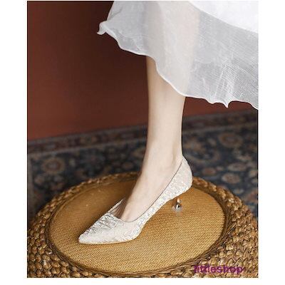 【3日以内出荷】パンプス ポインテッドトゥ 走れるハイヒール ピンヒール ポインテッド サテン レース 靴 お呼ばれパンプス シルバー ゴールド