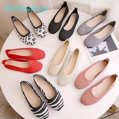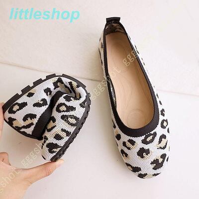 【3日以内出荷】フラットシューズ バレエシューズ パンプス レディース レオパード おしゃれ かわいい ぺたんこシューズ ローヒール スクエアトゥ ニット 可愛い 柔軟