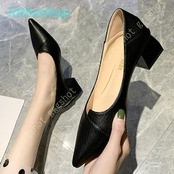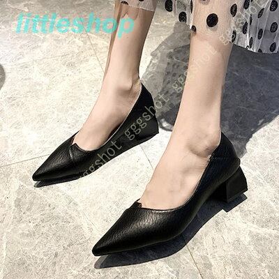 【3日以内出荷】パンプス 痛くない 歩きやすい 走れる 5CMヒール チャンキーヒールポインテッドトゥパンプス レディース デザインヒール 太ヒール おしゃれ きれいめ 黒