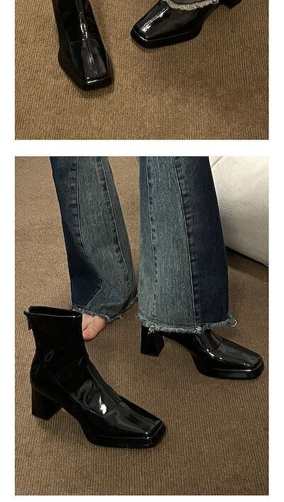 スノーブーツ ショットブーツ マーディンブーツ レディース 秋冬 韓国ファッション ハイヒール 太ヒール モカシン