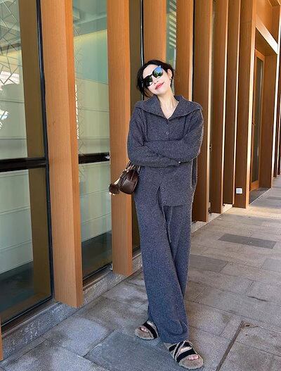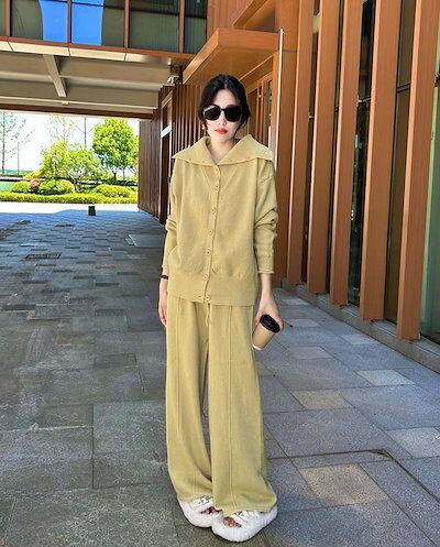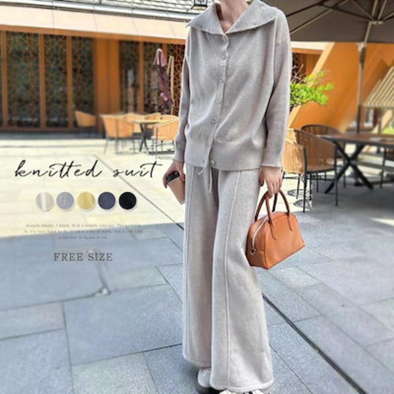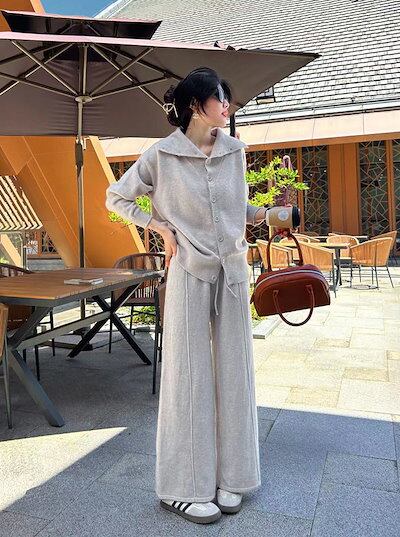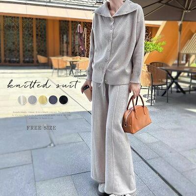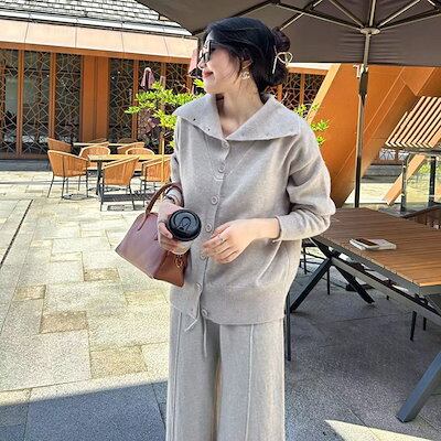 ニット セットアップ レディース 秋冬 カジュアル 2点セット 上下セット 秋冬セット パンツスーツ パンツスーツ セーター パンツ 柔らかい 女性らしい 体型カバー お洒落 大人 かわいい きれいめ | DOKO-ME
