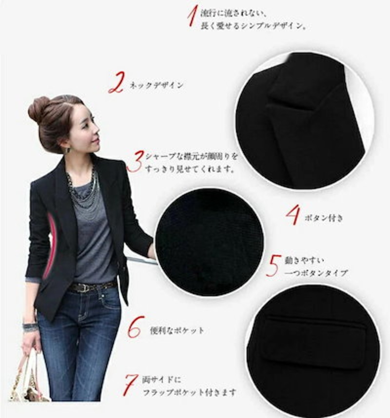 テーラードジャケットテーラードジャケットスーツジャケットアウター秋アウタージャケットレディース大きいサイズ小さいサイズ着痩せ無地フォーマルジャケットスーツ上着通勤OL秋ブラック入学式卒業式 | DOKO-ME
