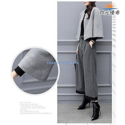 無料限定!【毎日厳選 】 セットアップ レディース 40代 20代 フォーマル 長袖 2点セット アウター 冬コート ガウチョパンツ カジュアル 大きいサイズ おしゃれ 着痩せ OL | DOKO-ME