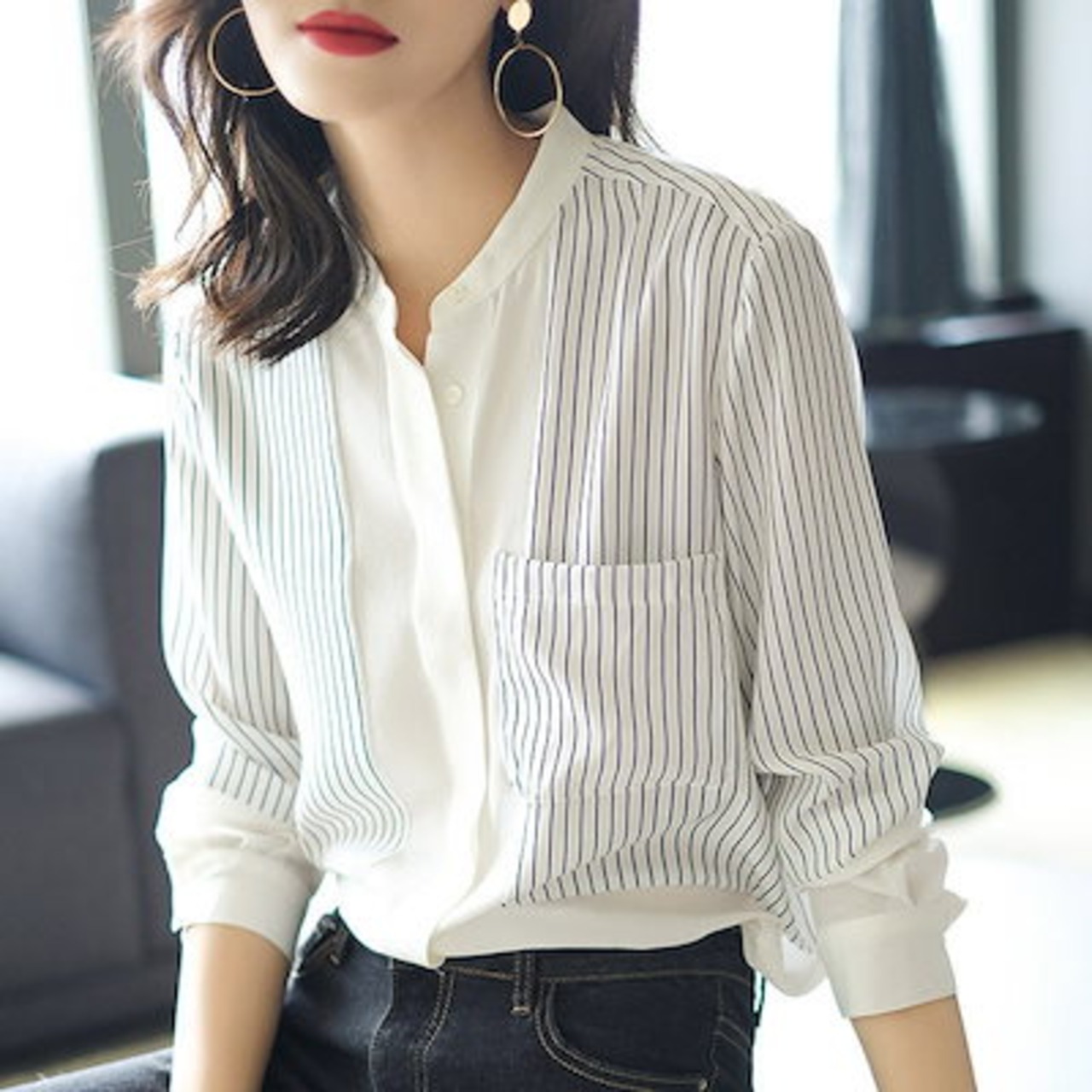 ワイシャツ レディース ブラウス シャツ 長袖 形態安定 ストライプ 仕事 フォーマル 就活 ビジネス 事務服 制服 ホワイト スーツ カジュアル