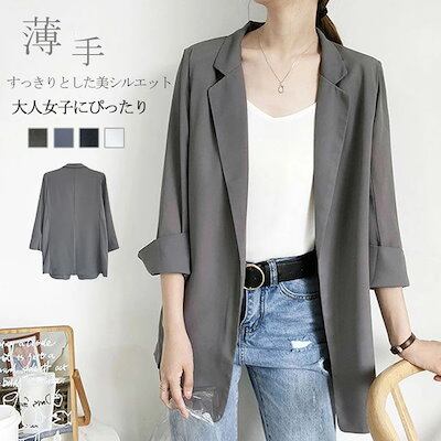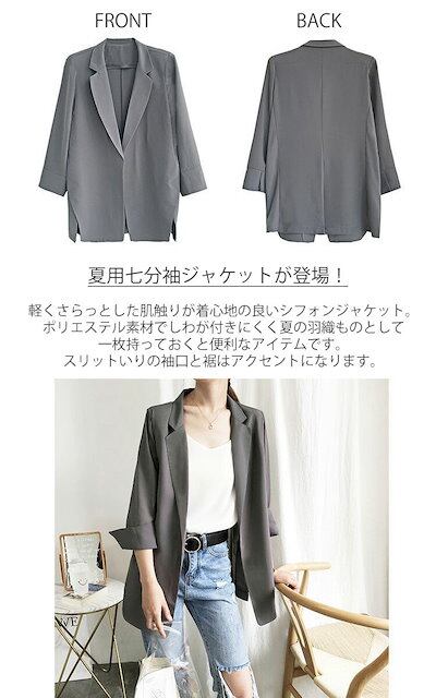 サマージャケット レディース 薄手 ジャケット 夏 カジュアル スーツ 七分袖 テーラードジャケット 洗える シフォン オフィス 洗える フォーマル 春夏 サマースーツ グレー 黒 ブラック オフィス | DOKO-ME