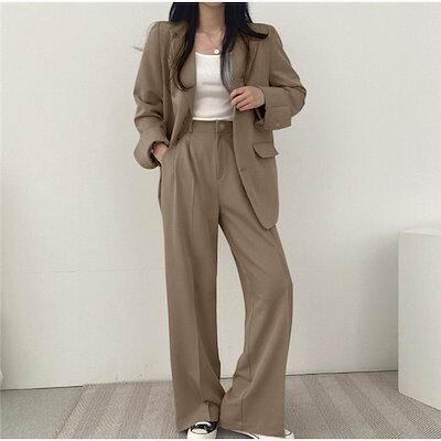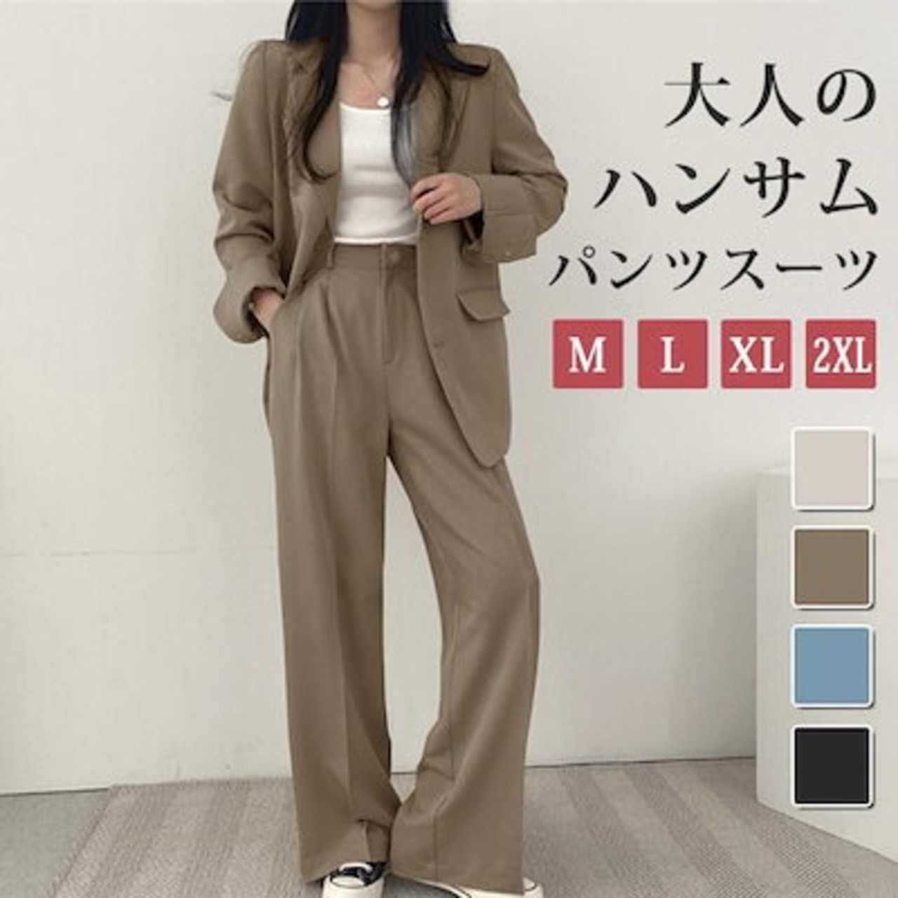 期間特典限定/ パンツスーツ レディース セットアップ フォーマル スーツ ゆったり 韓国 卒園式 入学式面接 ジャケット 上下セット 2点セット 春 秋