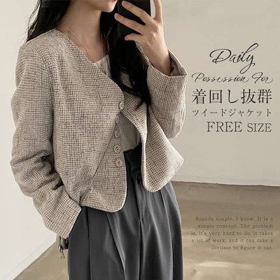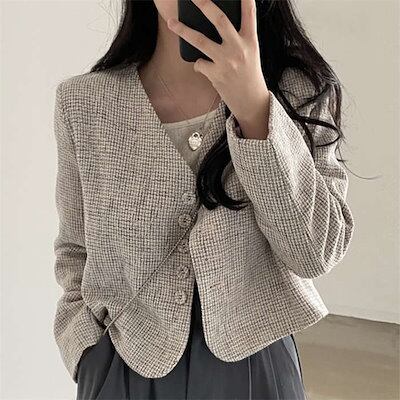 ツイード ジャケット レディース 春 秋 スーツジャケット ショート丈 ノーカラー フォーマル ツイード スーツ カーディガン ノーカラー 春 秋 着痩せ 体型カバー シンプル カジュアル おしゃれ | DOKO-ME