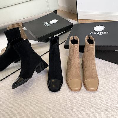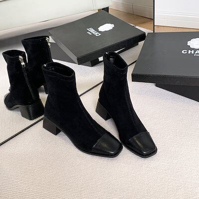 秋冬ファッション レディースショートブーツ 冬 裏ボアタイプ ウエスタンブーツ シューズ 太ヒール ショット丈ブーツ ーシューズ スエード 黒 スエード調靴 ブーツ 靴