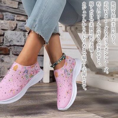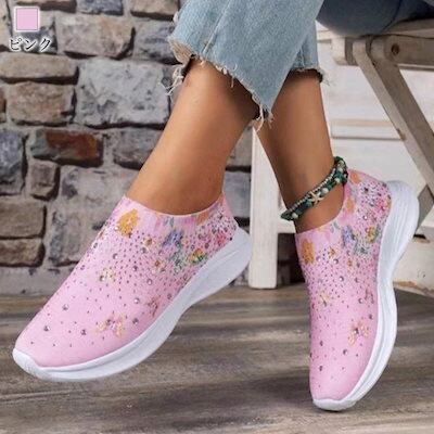 スニーカー レディース フラワー柄スリッポン ブランド 3E 歩きやすい ハイカット 4E 疲れない ボア ピンク キルティング シューズ 軽量 夏 厚底 おしゃれ 白 靴 あったか 人気 冬 春 新 | DOKO-ME