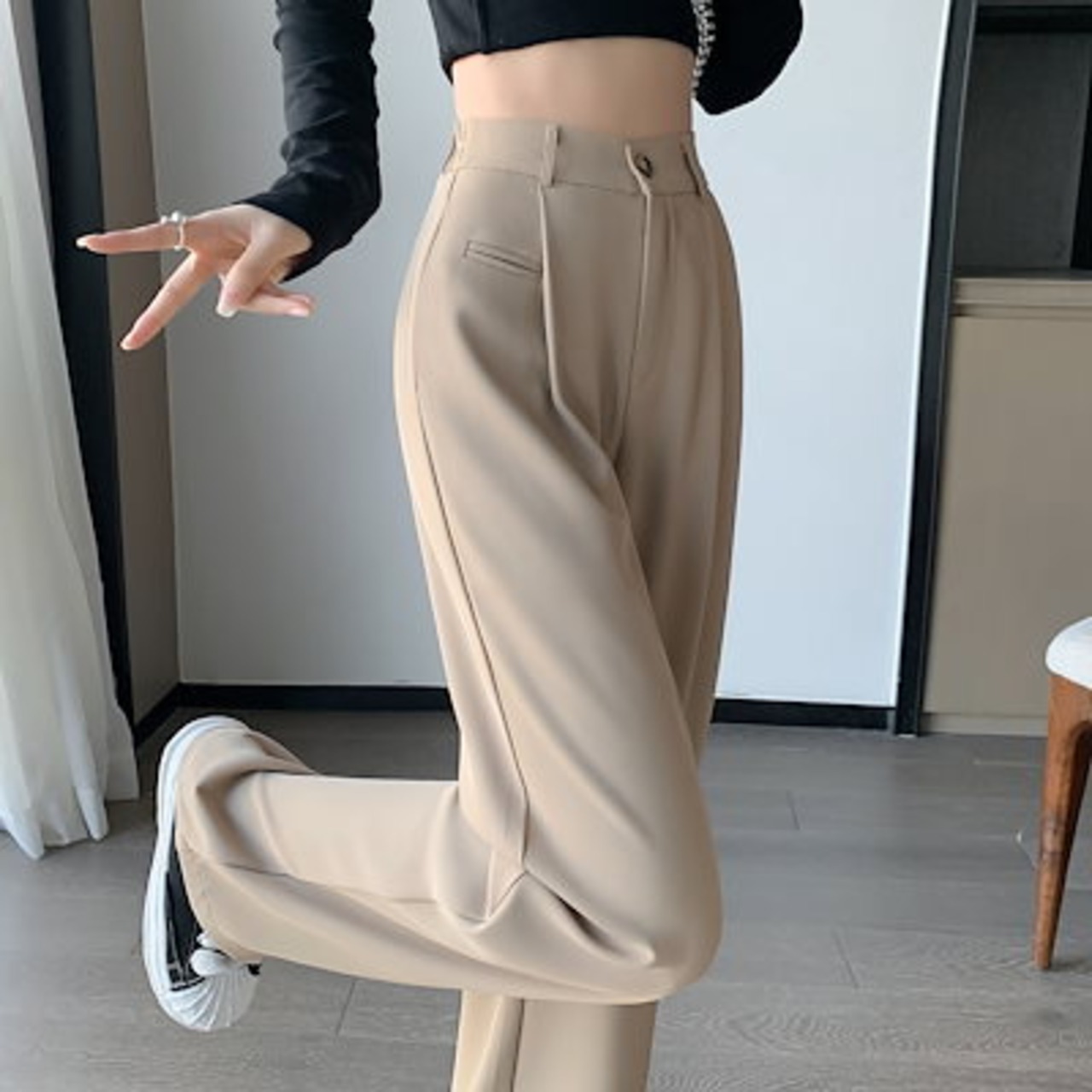 ワイドパンツ スーツパンツの高級感 2024年春夏新作 ハイウエストドレープワイドパンツ ゆったりとした細身のパンツ ワイドパンツ レディース