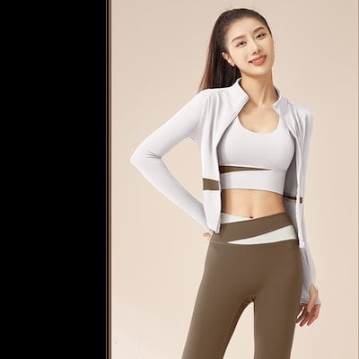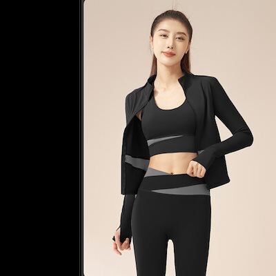 おしゃれヨガウェアカラーブロッキング3ピースヨガスーツヌードヨガスーツランニング巾着フィットネススーツ