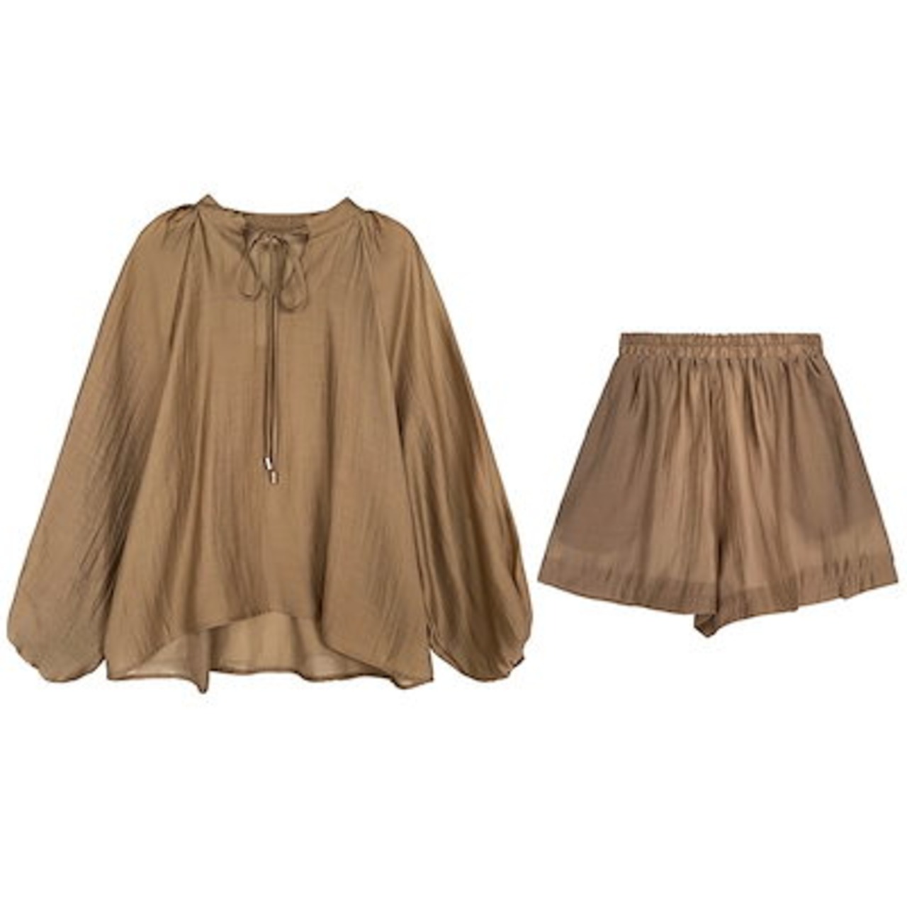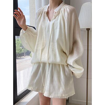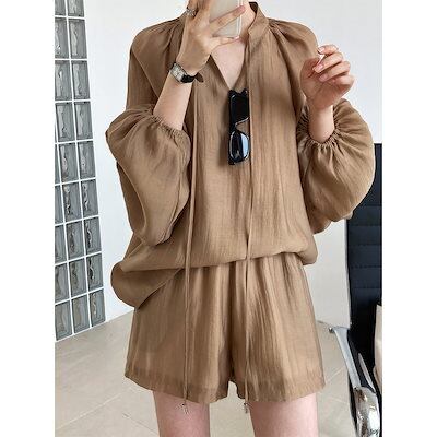 韓国 涼しく楽ちんセットアップ レディース 夏 夏のスポーツカジュアル長袖日焼け止め+ワイドパンツセット2点セット ルームウェア セットアップ スウェット上下セット スーツ