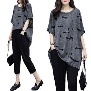 涼しく楽ちんセットアップ レディース 夏 韓国 半袖 オーバーサイズ婦人服スーツTシャツ太っているmm痩せて見える2つのセット ルームウェア セットアップ スウェット上下セット スーツ | DOKO-ME