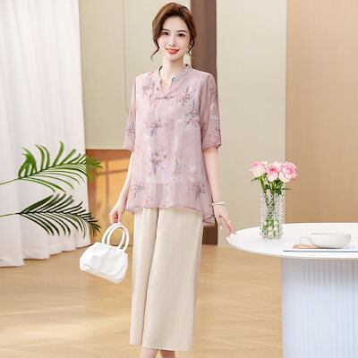 【2点セット】涼しく楽ちんセットアップ レディース 夏 半袖 2024新型中高年婦人服夏の半袖ゆったり上着2枚組中年ママ ルームウェア セットアップ スウェット上下セット スーツ 30 40 50 | DOKO-ME