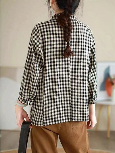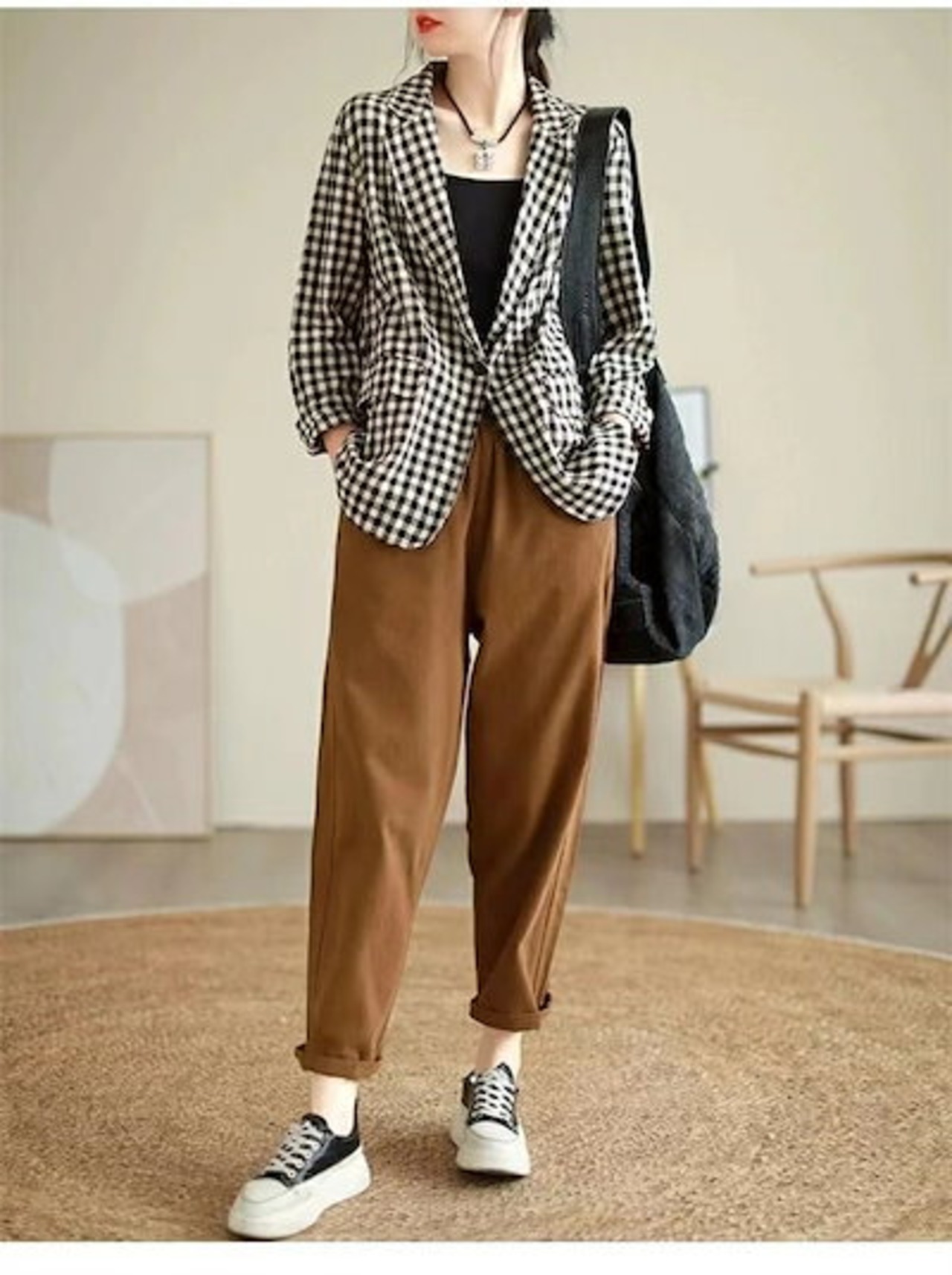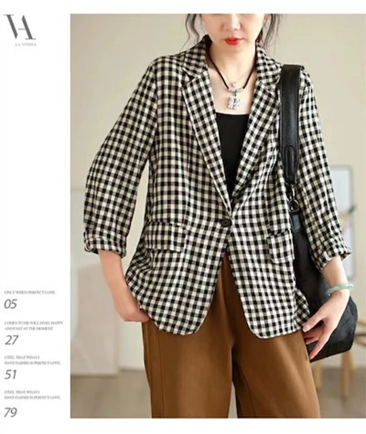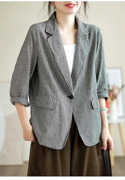 テーラードジャケット チェック柄 秋 レディース アウター 大きいサイズ スーツ ギンガムチェック ジャケット トップス アウター コート 羽織 ゆったり カジュアル 大人 通勤 仕事 カジュアル 体 | DOKO-ME