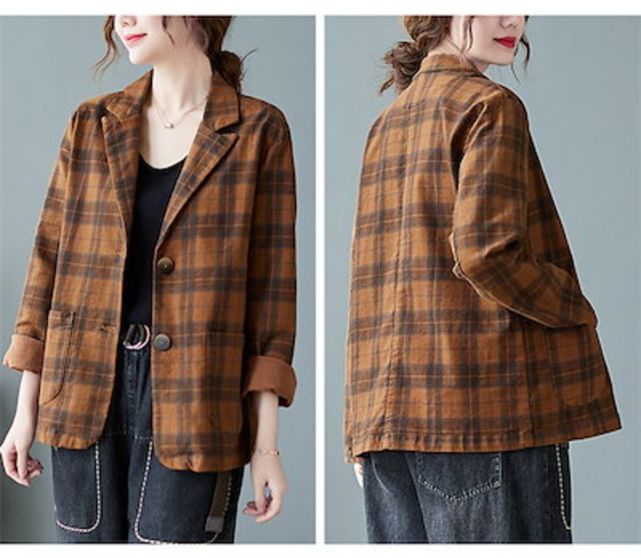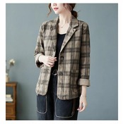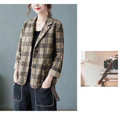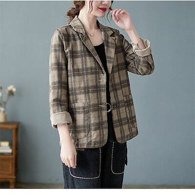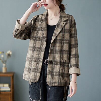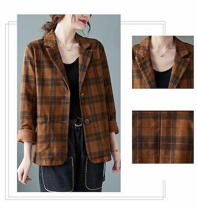 テーラードジャケット チェック レディース 秋 春 大きいサイズ スーツ チェックジャケット トップス アウター コート 羽織 ゆったり カジュアル 大人 通勤 OL ビジネス カジュアル 体型カバー