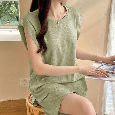 夏の準備!ノースリーブ パジャマ ルームウェア夏生新作ベストノースリーブショートパンツ胸パッド入りゆったりスーツ薄手のホーム服レディース 韓国ファッション