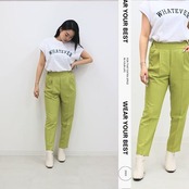 タックパンツ/レディース/ウエストゴム/ゆったり/テーパード/パンツ/リラックス/すっきり/きれいめ/コクーン/可愛い/カラーパンツ/ジョーゼット/春/夏/秋/オールシーズン/着回し/スタイルアップ | DOKO-ME