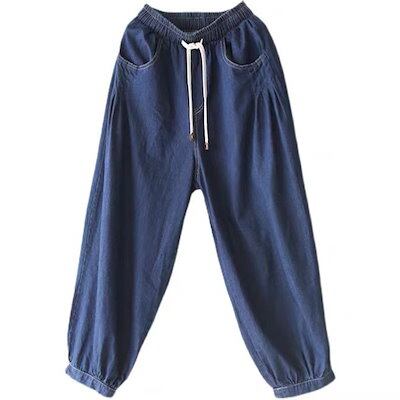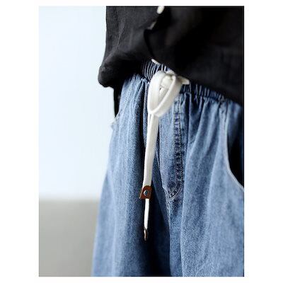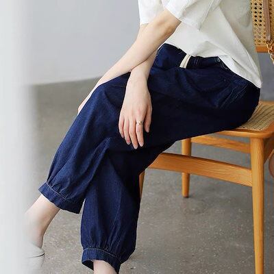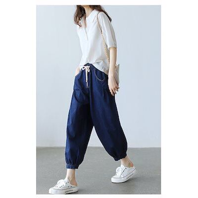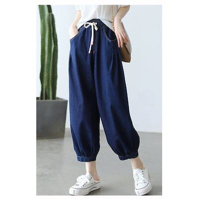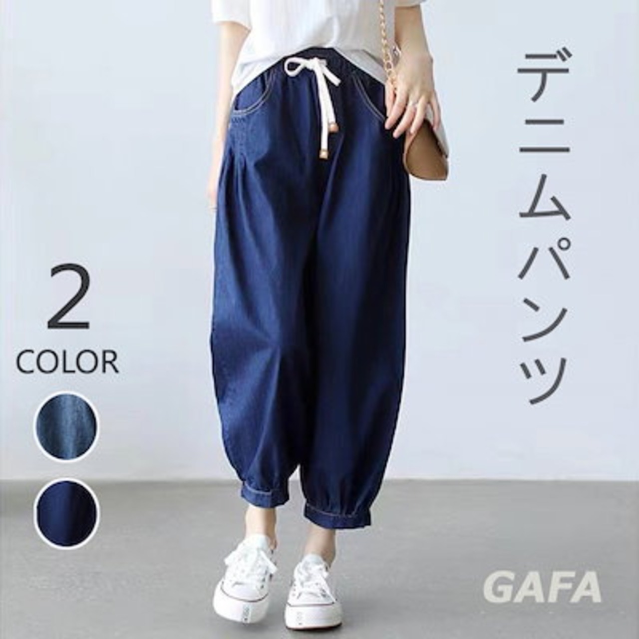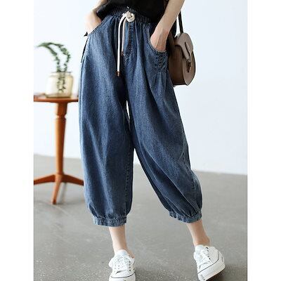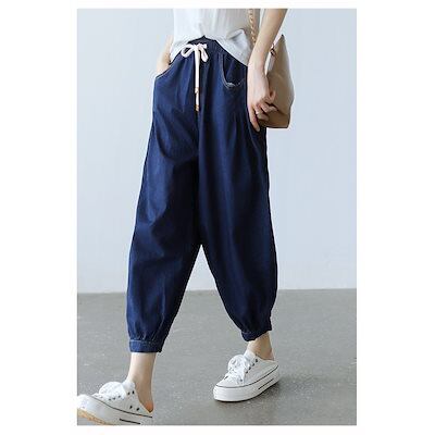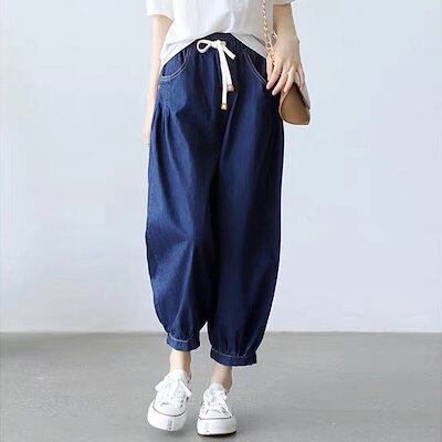 デニムパンツ レディース 大きい サルエルパンツ 秋 冬 ジョガーパンツ ウェストゴム リラックス ジーパン クロップドパンツ バルーンシルエット