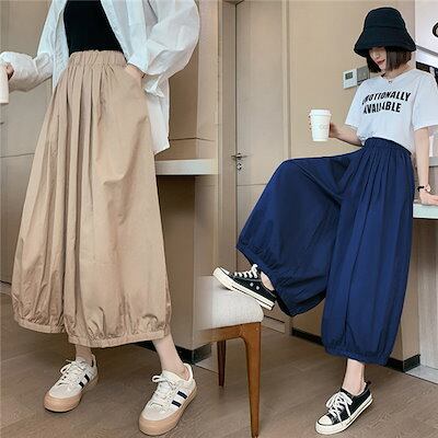 ワイドレッグパンツ バルーンパンツ ガウチョスタイルパンツ レディース ベルト付き ゆったり プラスサイズ 涼しい 綿 麻 ハイウエスト 無地 コットン ズボン ポケット付き ウエストゴム オフィス | DOKO-ME