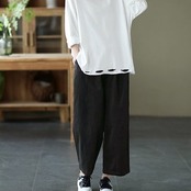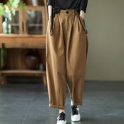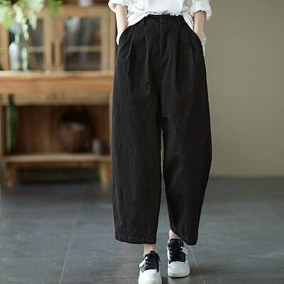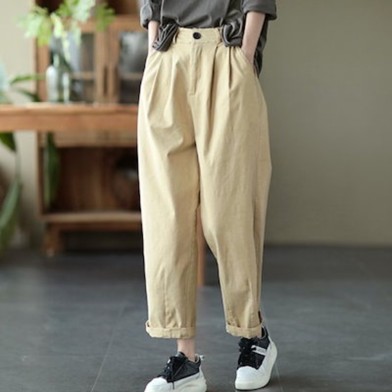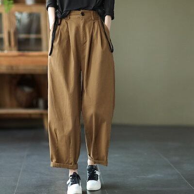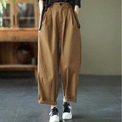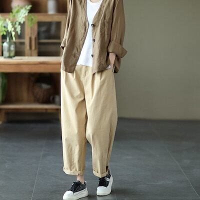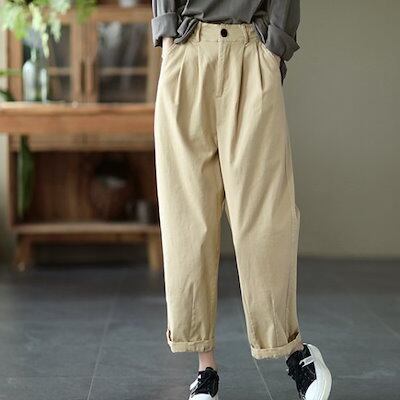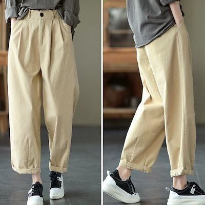 【取寄:納期2週間】チノパンツ コットン ワイド レディース 韓国 ファッション サルエル テーパード ワイドパンツ 大人カジュアル ウエストゴム ナチュラル リネンパンツ 秋冬 ゆったりパンツ | DOKO-ME