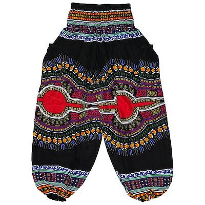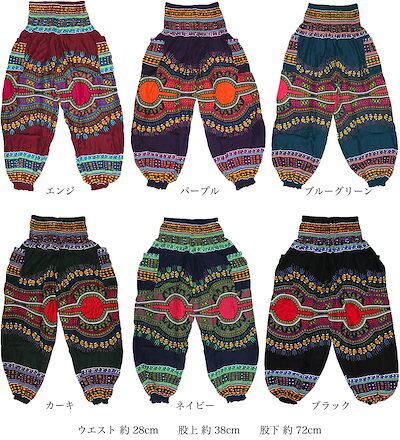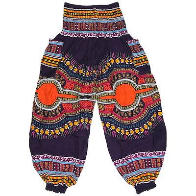 派手カラー渋めカラーのドッキングが個性的なアフリカンプリントアラジンパンツ 普段着はもちろんリゾート海プールやダンス衣装にも大活躍 エスニック アジアン