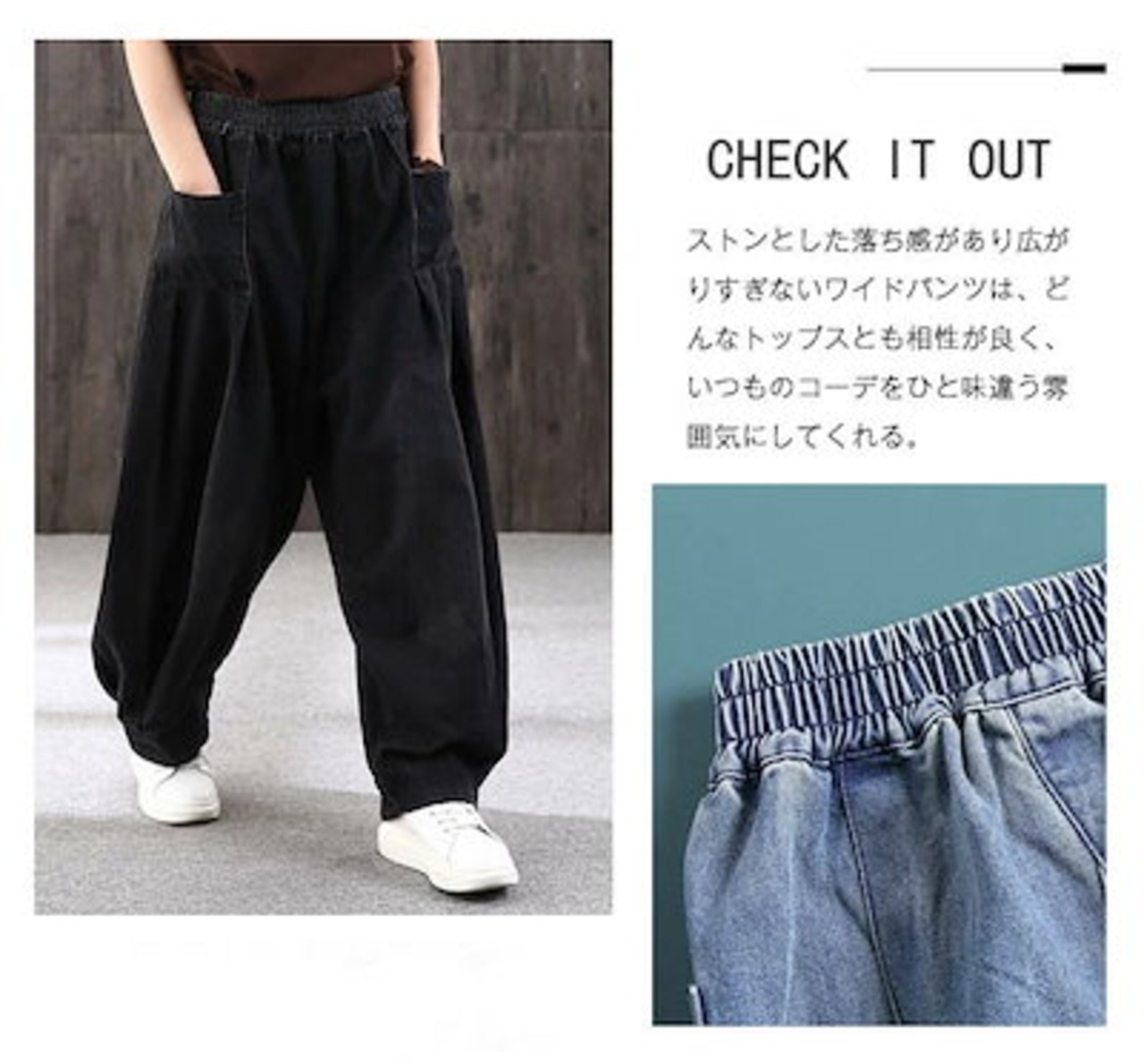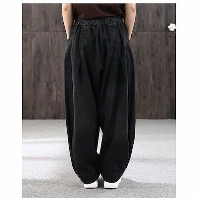 ワイドパンツ レディース パンツ ロングパンツ ウエストゴム サイドポケットサルエルパンツ デニムパンツ コクーンデニム サーカスパンツ パッチワーク ウエストゴム アンクル丈 ワイドパンツ お洒落 | DOKO-ME