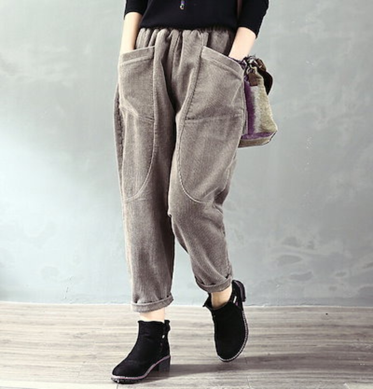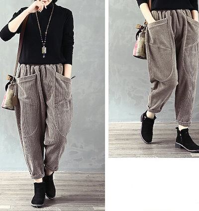 コーデュロイパンツ サルエルパンツ ハルーン パンツ レディース ロング丈 コーデュロイ カジュアルパンツ ウエストゴム ロングパンツ コーデュロイパンツ ハルーンパンツ ボトムス 秋冬 シンプル レ | DOKO-ME