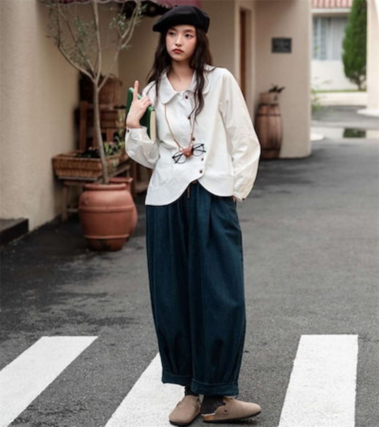 デニムパンツ レディース イージーワイドパンツ ボトムス パンツ ウエストゴム ゆったり 美脚 レトロ リラックス 秋 冬 無地 ガウチョ ポケット付 サルエルパンツ バルーン カジュアル 体型カバ | DOKO-ME