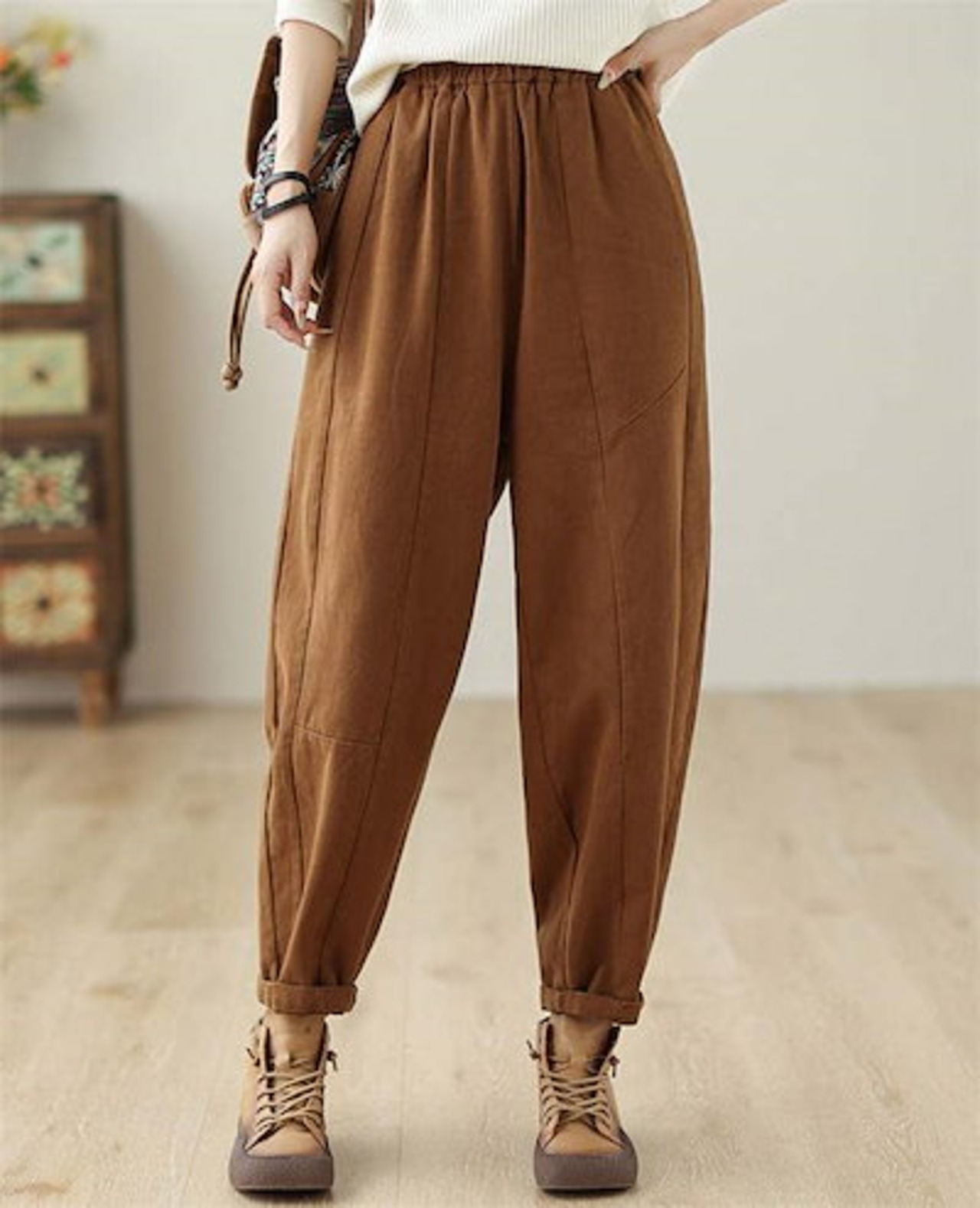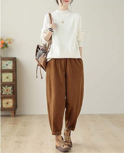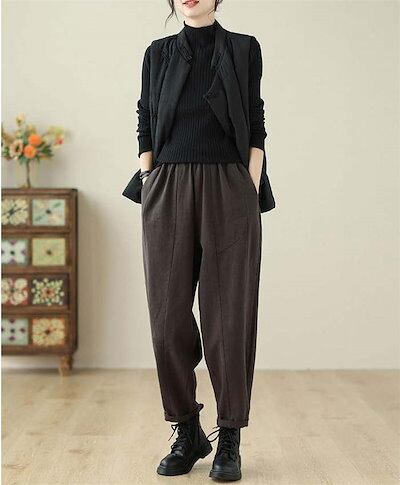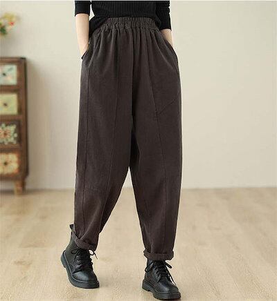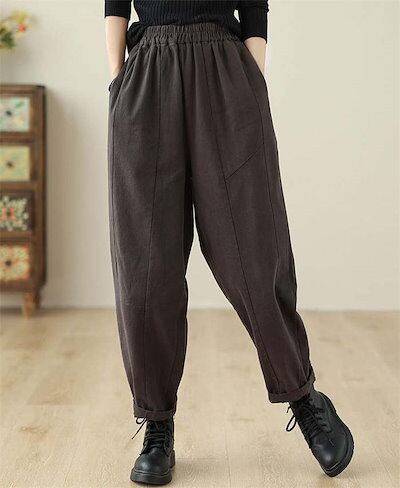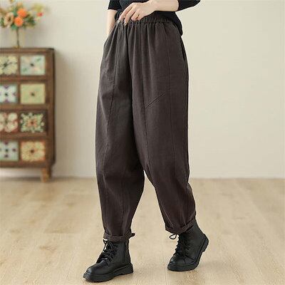 パンツ レディース ボトムス ロング丈 ロングパンツ テーパードパンツ サルエルパンツ 秋 冬 ワイドパンツ ウエストゴム ズボン 着痩せ 綿 コットン ポケット付き 美脚 カジュアル 秋冬 大きいサ | DOKO-ME
