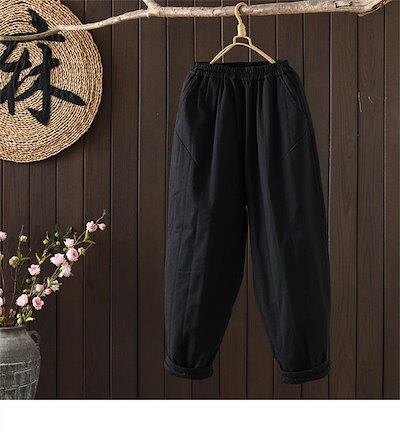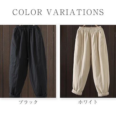 パンツ 中綿 レディース 秋冬 ボトムス ロングパンツ 中綿入り サルエルパンツ ウエストゴム ロング丈 マキシ 膝下 あったか 暖かい 防寒 シンプル 体型カバー 着痩せ ゆったり カジュアル 大人 | DOKO-ME