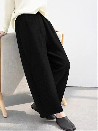 バルーンパンツ レディース 秋冬 ウール調 パンツ サーカスパンツ コクーン ワイドパンツ 体型カバー ガウチョ ロングパンツ ウエストゴム サルエルパンツ 大きいサイズ ボトムス ワイド ハロンパン | DOKO-ME