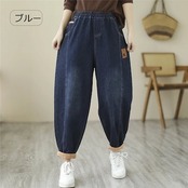 バルーンパンツ レディース春 パンツ ワイドパンツ デニムパンツ ロングパンツ 秋 ウエストゴム サルエルパンツ 大きいサイズ ボトムス コクーンパンツ ワイド ハロンパンツ ハイウエスト 体型カバー | DOKO-ME