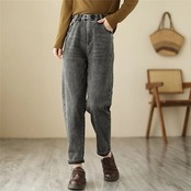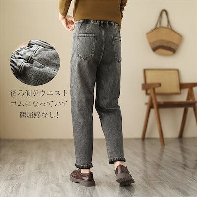 デニムパンツ レディース 微起毛 ロングパンツ デニム 秋冬 ロング サルエルパンツ ロングパンツ タックパンツ パンツ ボトムス ズボン テーパードパンツ ウエストゴム ハロンパンツ ハイウエスト | DOKO-ME
