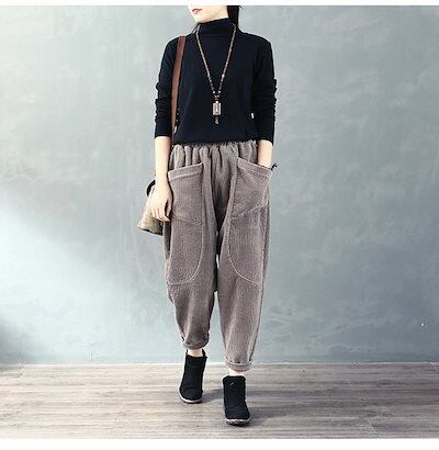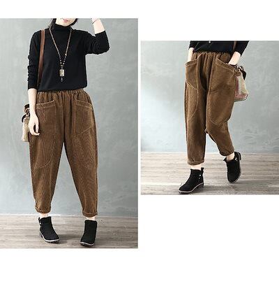 パンツ バルーンパンツ サーカスパンツ ワイドパンツ ボトムス レディース 秋冬 コーデュロイ ワイド 大きいサイズ コクーン ウエスト ゴム ロングパンツ サルエルパンツ ハロンパンツ ハイウエスト | DOKO-ME