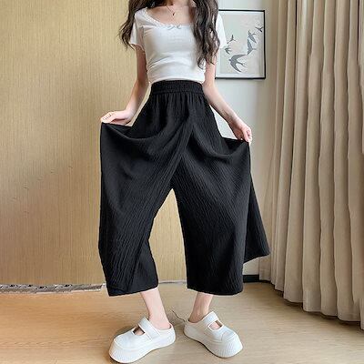 山本工装スカート夏2024新高腰字包カジュアル小柄氷糸ワイドスカート
