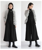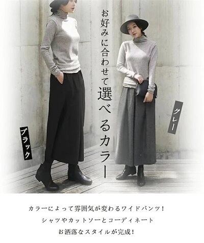 ウール アンクルパンツ 美脚 ガウチョパンツ レディース 九分丈 大きいサイズ 体型カバー ワイド スカン ゆったり スカーチョ 細見え タック 保温 ワイドパンツ 暖かい ボリューム 防寒 | DOKO-ME