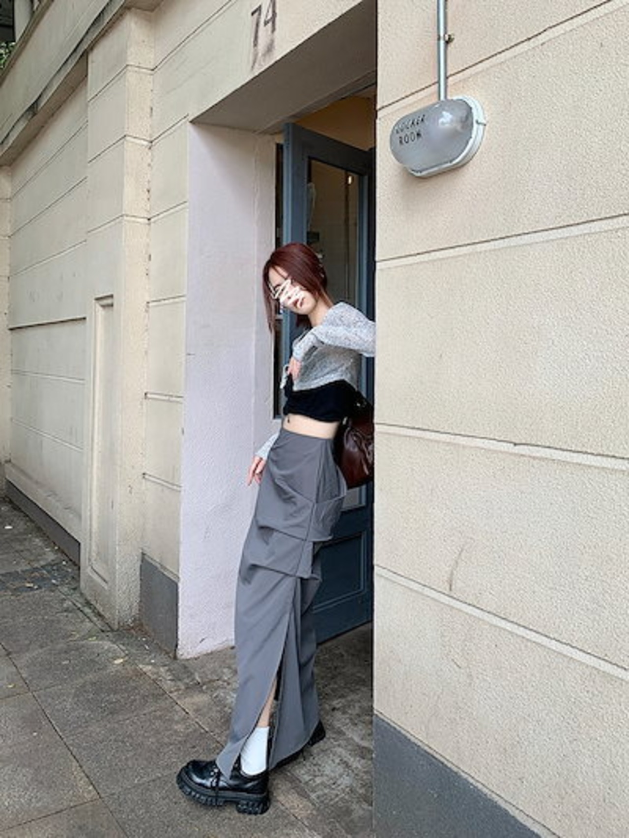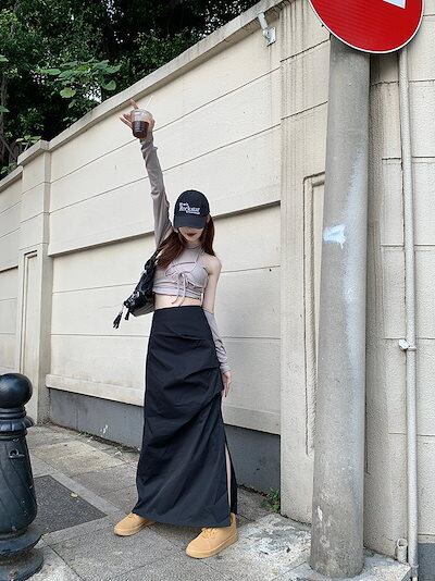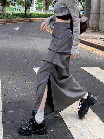 2024 春秋 スカート ロング丈 ポケット ハイウエスト マキシロング スカート ロング スカート 美脚効果 脚長効果 細見え 夏 おしゃれ かわいい サイド韓国系ファッション レディース お出かけ | DOKO-ME