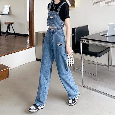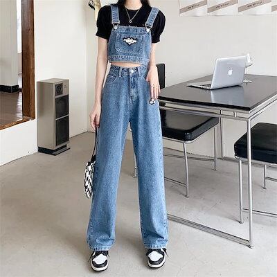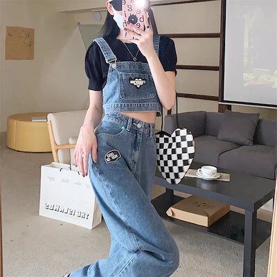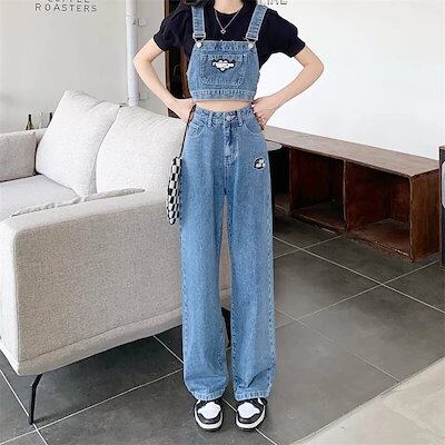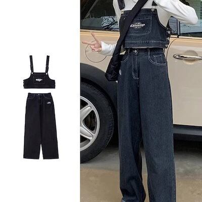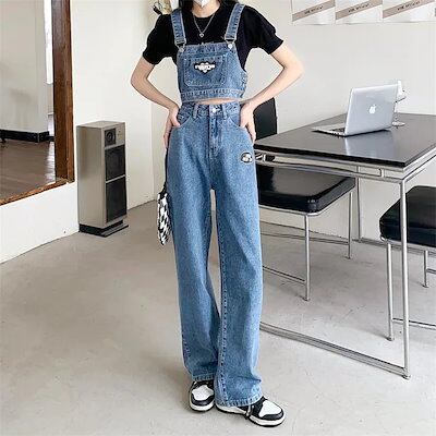 2024 春夏 セットアップ ショート丈トップス ファッション ジーンズ シルエット ハイウエスト ワイドパンツ ストレートパンツ ハイウエスト こなれ カジュアル メンズライクサイズセットアップ | DOKO-ME