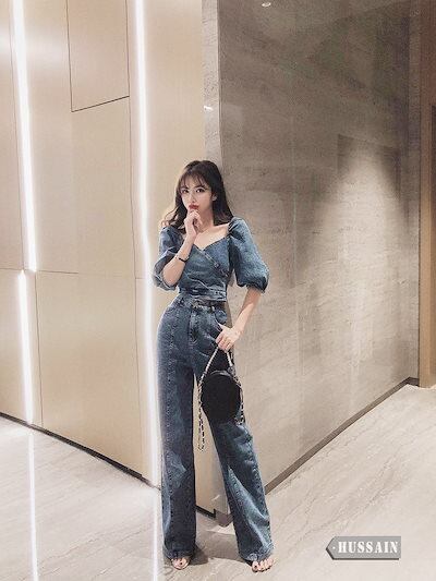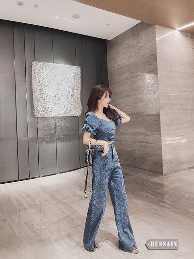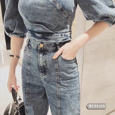 2024春夏 オーバーオール風 女っぽ セットアップ スタイルアップ スリーブ 半袖 きれいめ ショート丈トップス ハイウエスト パンツ カジュアル 脚長効果 ファッション系 レディース | DOKO-ME