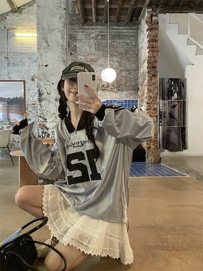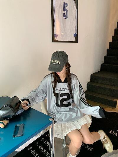 2024 秋冬 トップス 長袖 かわいいラウンドネック Tシャツ レディース 韓国風 12ロゴ衣装ルーズ ゆったりカジュアルおしゃれサイズスリーブシルエットファッション系サイドシャツフットスウエット春