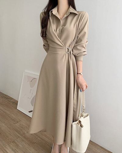 2024 秋冬 ウエストマークシャツロングワンピース