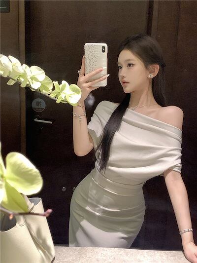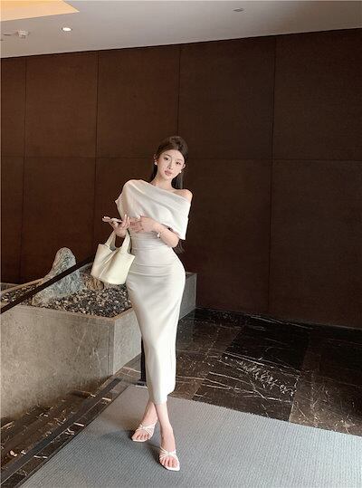 2024 春夏 ロングワンピース ロング丈 ワンピース 長袖 ファッション フィット カジュアル パーティー きれいめ ハイ ハーフリブフレンチスタイルアップ 色っぽ 女っぽ カジュアル大人