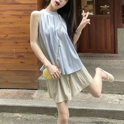 2024春夏ノースリーブ ベストシャツ トップス 韓国ファッション