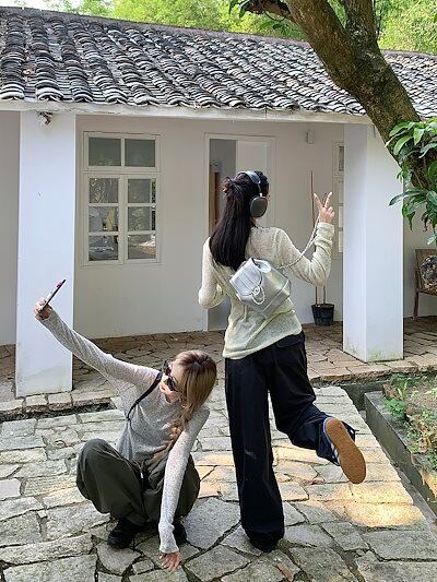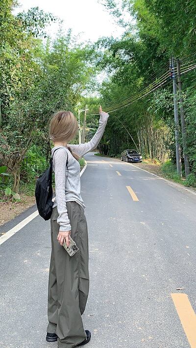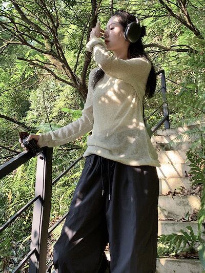 2024 春 透け感UP tシャツ ファッション 韓国 トップス デザイン カットソー イラストエンジェル 長袖丈パンツ