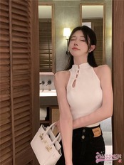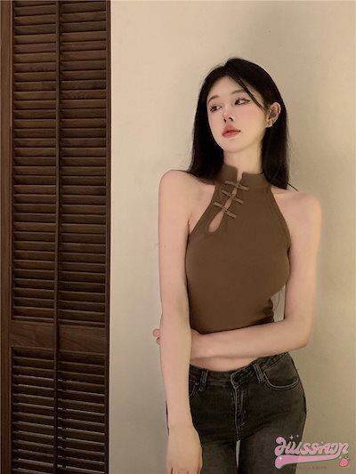 2024 春夏 4カラー 可愛い ブラウス トップス シャツ 長袖 ハイネック スタンドネック フレンチ カジュアル きれいめ 女っぽ フェミニン色っぽタンクトップレディースネック風キャミソール | DOKO-ME